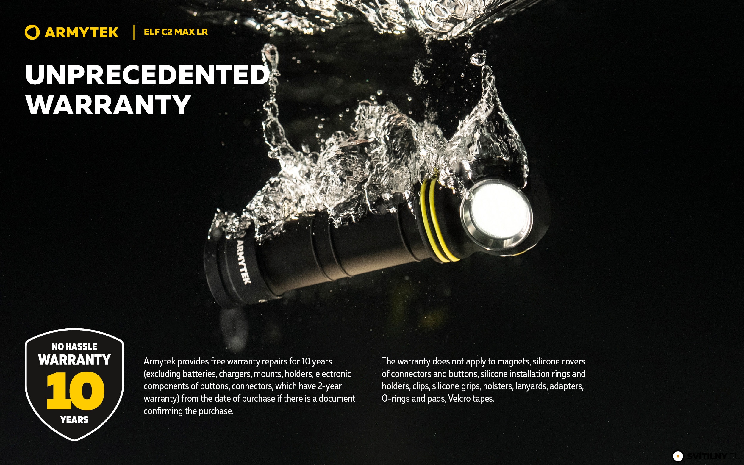 Záruka 10 let na čelovku, 2 roky na akumulátor.