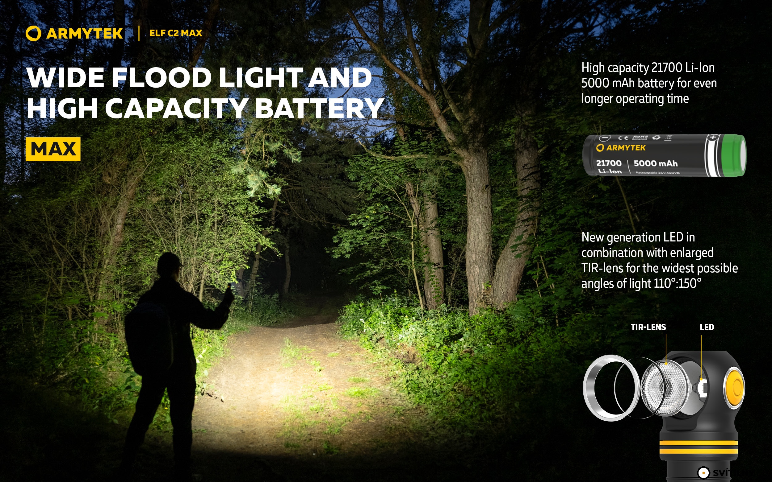 Nová vlajková loď série Elf s extrémním výkonem. Nabíjecí čelovka Armytek Elf C2 Max USB-C White nabízí neuvěřitelný světelný tok až 4500 lumenů. Světelným zdrojem je LED Cree XHP70.3 HD, která v kombinaci s TIR kolimátorem vytváří extrémně široký světelný kužel s rozptylem až 150° a dosvitem 150 metrů. Součástí balení je vysokokapacitní Li-ion akumulátor 21700 5000 mAh, který se nabíjí přímo v čelovce pomocí USB-C konektoru. Unikátní novinkou je režim Lampy, kdy svítilna funguje i bez vložené baterie přímo z powerbanky. Celkem svítilna nabízí sedm funkcí svícení. Armytek Elf C2 Max je univerzální svítilna 4v1 – ideální pro práci v průmyslu, sport, turistiku, rybolov i jako každodenní EDC svítilna.