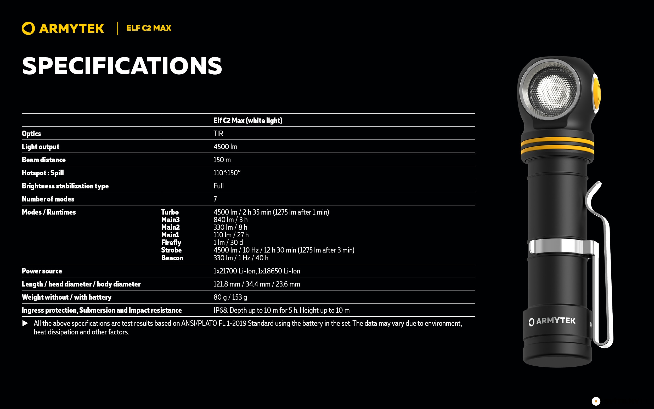 Parametry čelovky Armytek Elf C2 Max USB-C White
