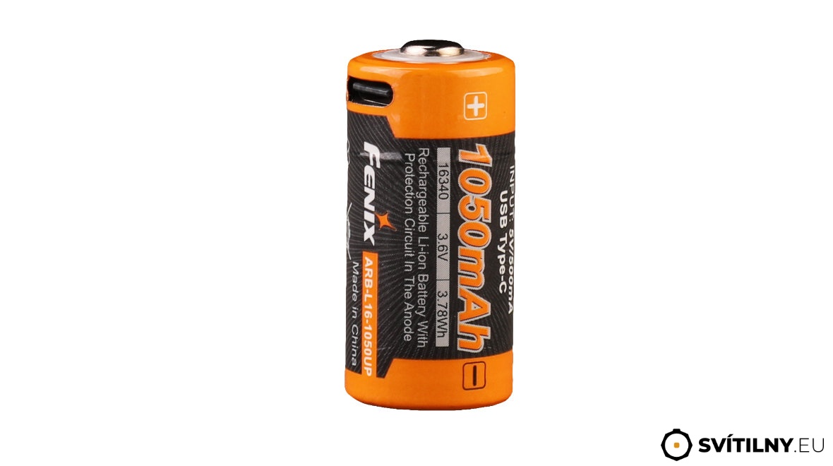 Fenix ARB-L16-1050UP je špičková nabíjecí Li-ion baterie velikosti RCR123A (16340) s obrovskou kapacitou 1050 mAh a vlastním nabíjecím USB-C konektorem.