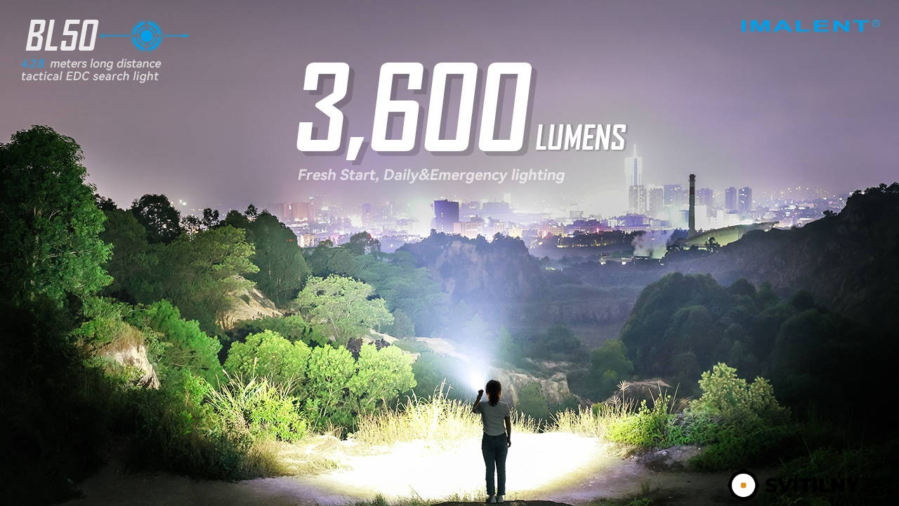 Nabíjecí kapesní svítilna Imalent BL50 nabízí navzdory kompaktním rozměrům extrémní výkon 3600 lumenů s dosvitem až 428 metrů. Je osazena špičkovou LED Cree XHP50.3 HI, v kombinaci s doplňkovým 365nm UV zdrojem. Ultrafialové světlo lze využít pro rychlou kontrolu pravosti dokladů a bankovek, ke kontrole čistoty nebo kvality materiálu, vytvrzování UV lepidel či k forenzní analýze. Také lze aktivovat extra silný stroboskop (3600 lumenů), jenž může posloužit v sebeobraně.