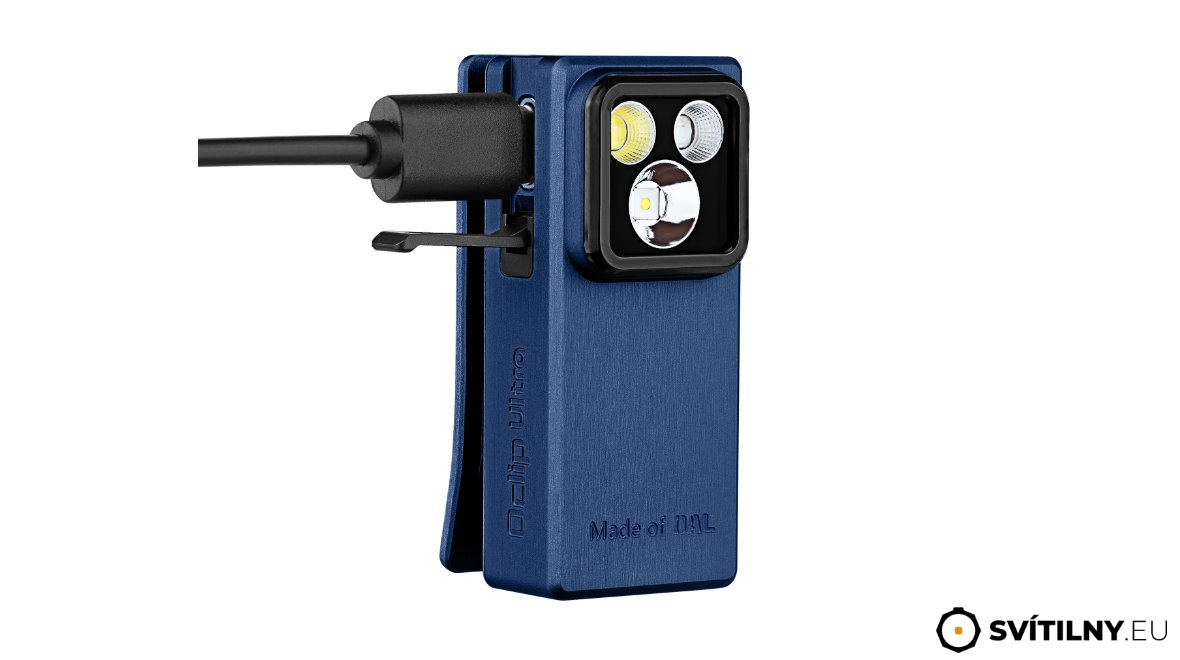 Olight Oclip Ultra je nejnovější a nejvýkonnější verze univerzální "klipsnové" svítilny od Olight pro náročné uživatele. Nabízí tři oddělené zdroje světla, každý pro specifické využití. Šíroký reflektor poskytuje maximální světelný tok 530 ANSI lumenů pro osvětlení širokého okolí, dálkový reflektor s výkonem 450 lumenů dosvítí na vzdálenost až 130 metrů a nově je svítilna vybavena UV světlem (365 nm) s výkonem 800 mW pro kontrolu bankovek, hygieny či hledání minerálů. Bílé reflektory lze zapnout i do režimu stroboskopu nebo signalizačního blikání (maják), svítilna tak může posloužit jako bezpečnostní prvek pro uchycení na batoh, kapsu, límec, kšilt, kapuci nebo popruh. Kvalitní klips s rozpětím 14 mm dle testů vydrží alespoň 10 000 cyklů otevření-zavření. Má pevný úchop a není třeba se bát jeho uvolnění.