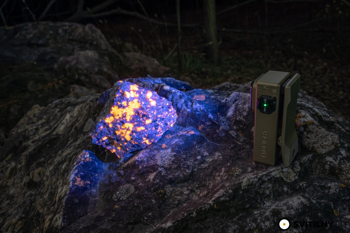 - Používá 3 špičkové LED: širokou a dálkovou (Cool White, CRI 70) a UV LED (365-370 nm).