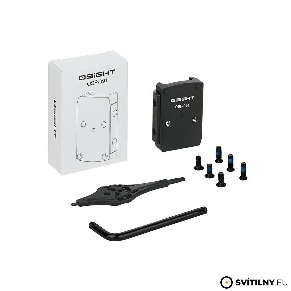 - Obsah balení: Montáž OSP-091, 2 sady šroubů pro optiku (M3.5 různé délky), klíč T25 L-shape, nástroj Osight Screw Tool, uživatelský manuál.