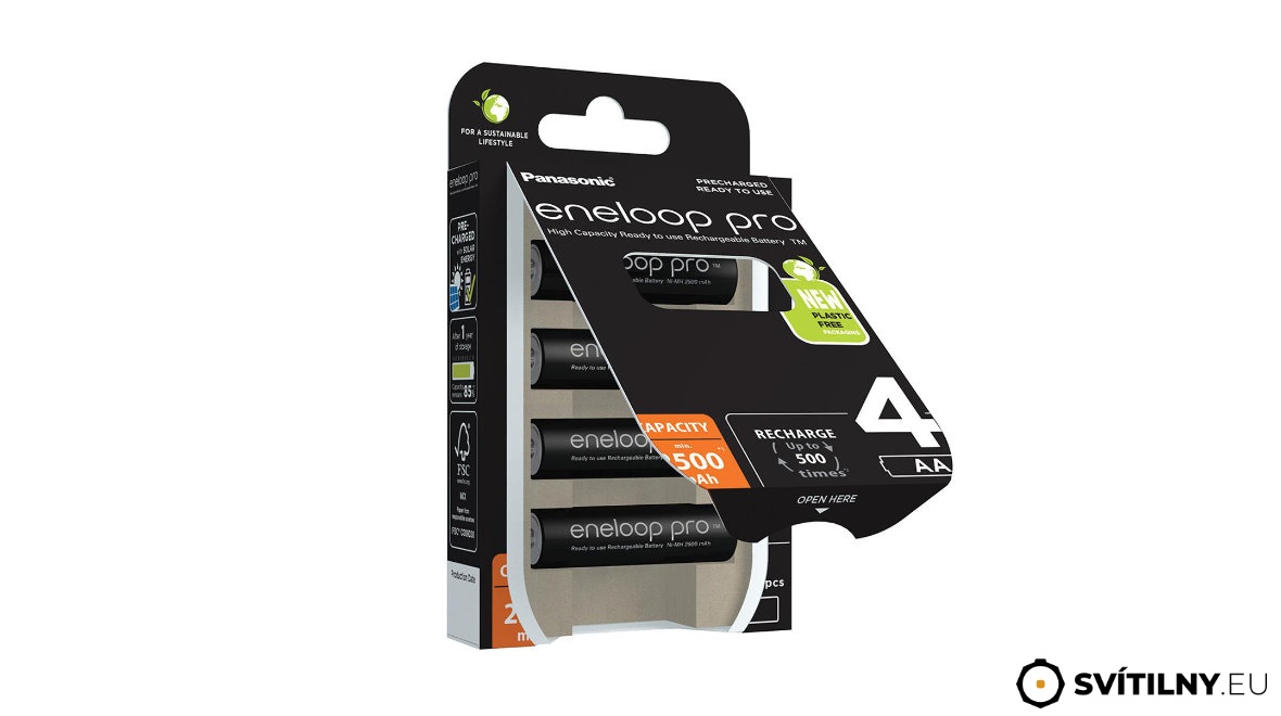 Špičkové nabíjecí tužkové NiMH baterie Panasonic Eneloop Pro (dříve Sanyo XX Eneloop) s minimální kapacitou 2500 mAh (typicky. 2550 mAh). Akumulátory Panasonic Eneloop Pro kombinují výhody vysoké kapacity a technologie eneloop pro velmi nízké samovybíjení. Jedná se o víteze testu nabíjecích AA baterií v časopise dTest 4/2020.