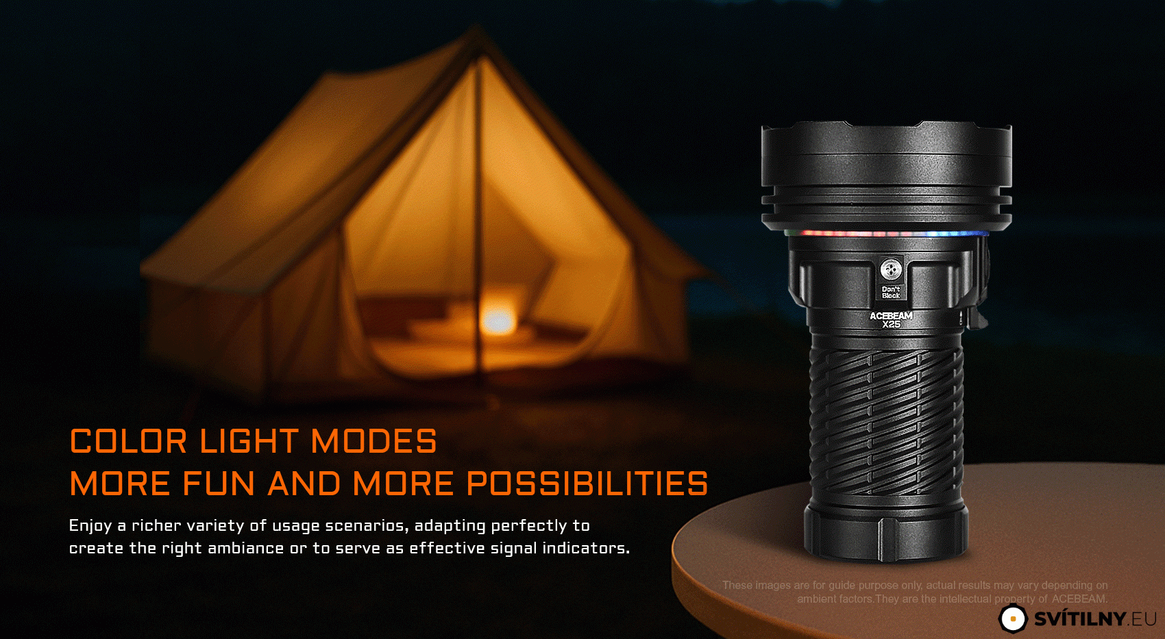 Kromě hlavního bílého světla nabízí svítilna i barevné RGB režimy (červená, zelená, modrá, SOS a další), které zvyšují její všestrannost pro signalizaci nebo kempování. Unikátní vlastnosti a extrémní dosvit činí z této svítilny opravdový klenot pro fajnšmekry, záchranáře a všechny, kteří potřebují vidět na extrémní vzdálenosti.